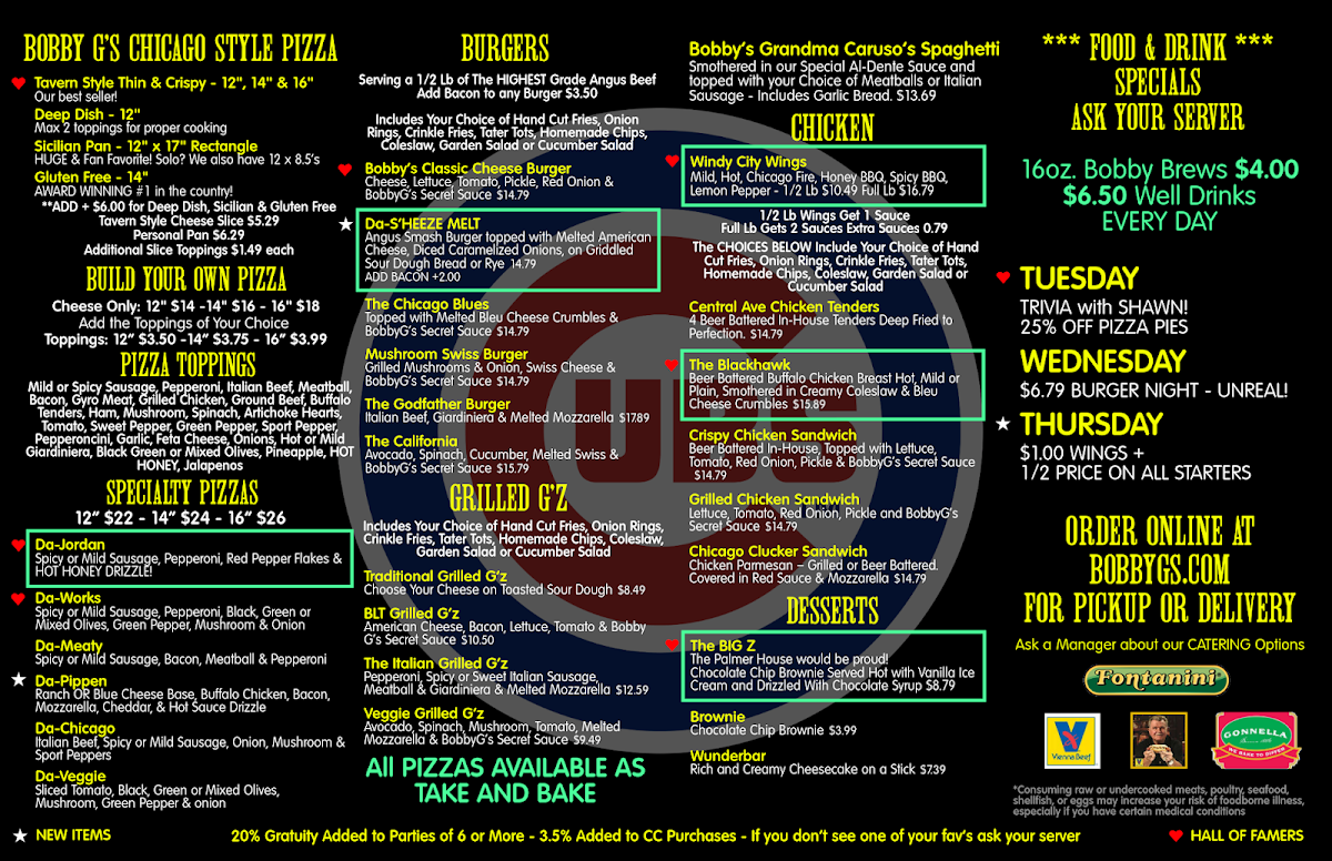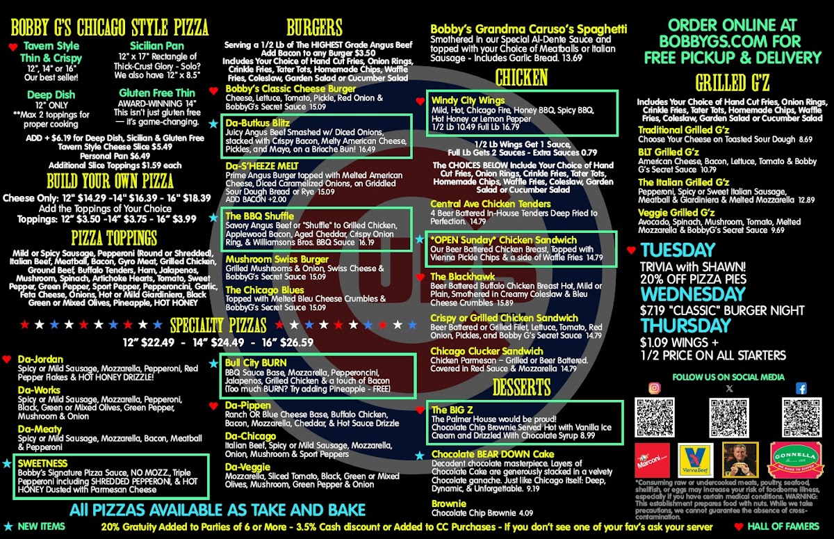 Each plate embodies the vibrant spirit of Chicago cuisine. The blend of tradition and quality makes Bobby G's an unforgettable dining experience, ideal for sports fans and food lovers alike.